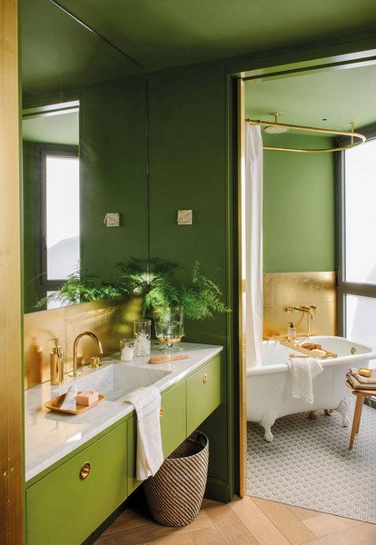 Copper has given way to gold. We will see it not only in this metal finish –such as taps, lamps or cupboard knobs or handles–, but also in details and accessories made of other materials. Like the mirror frames that recover the gold leaf finish with a more modern patina.